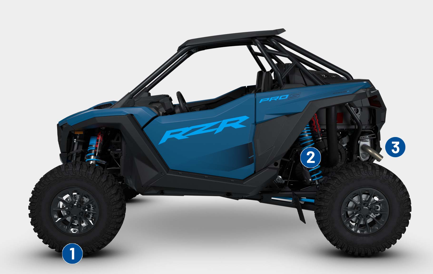 Trete auf und falle auf – mit dem markanten Design des RZR Pro S, das mehr Style und Performance bietet, um jedes Gelände zu erobern.