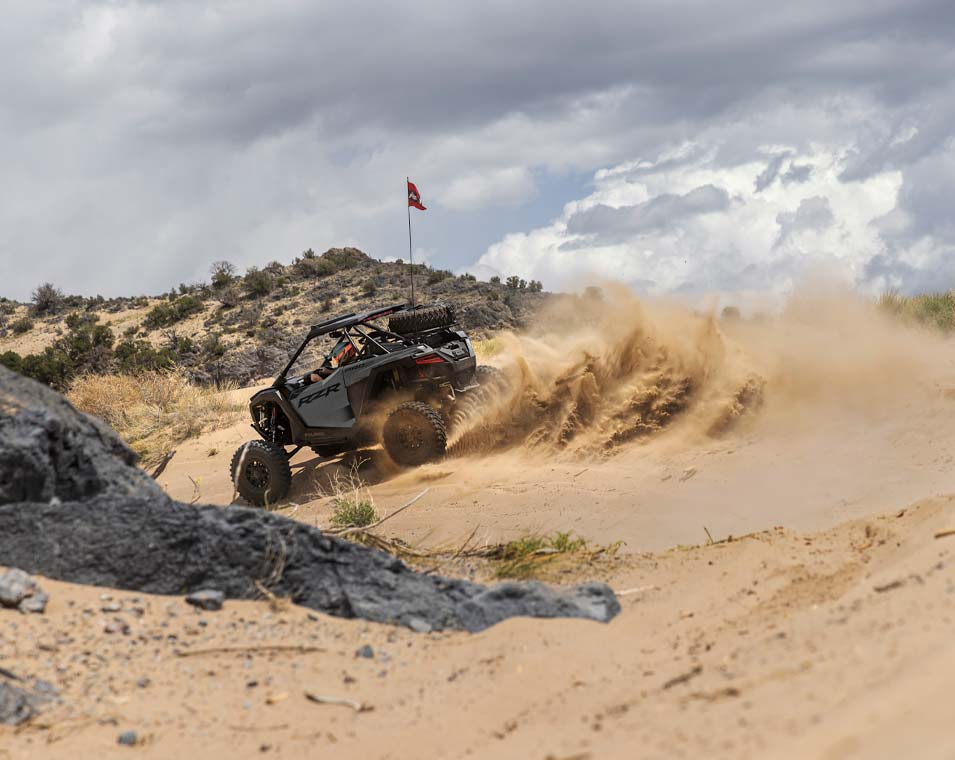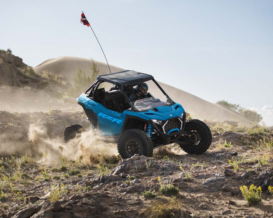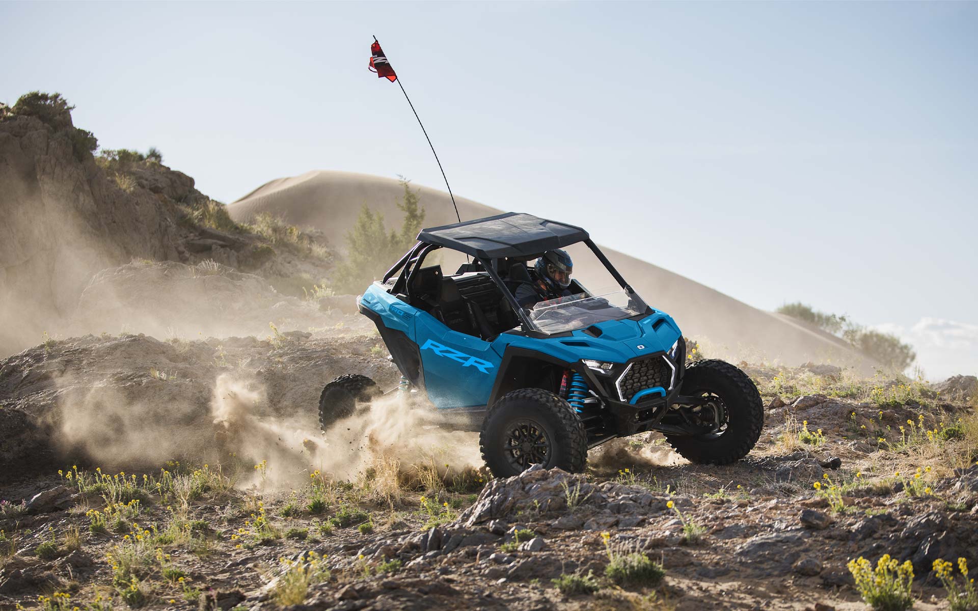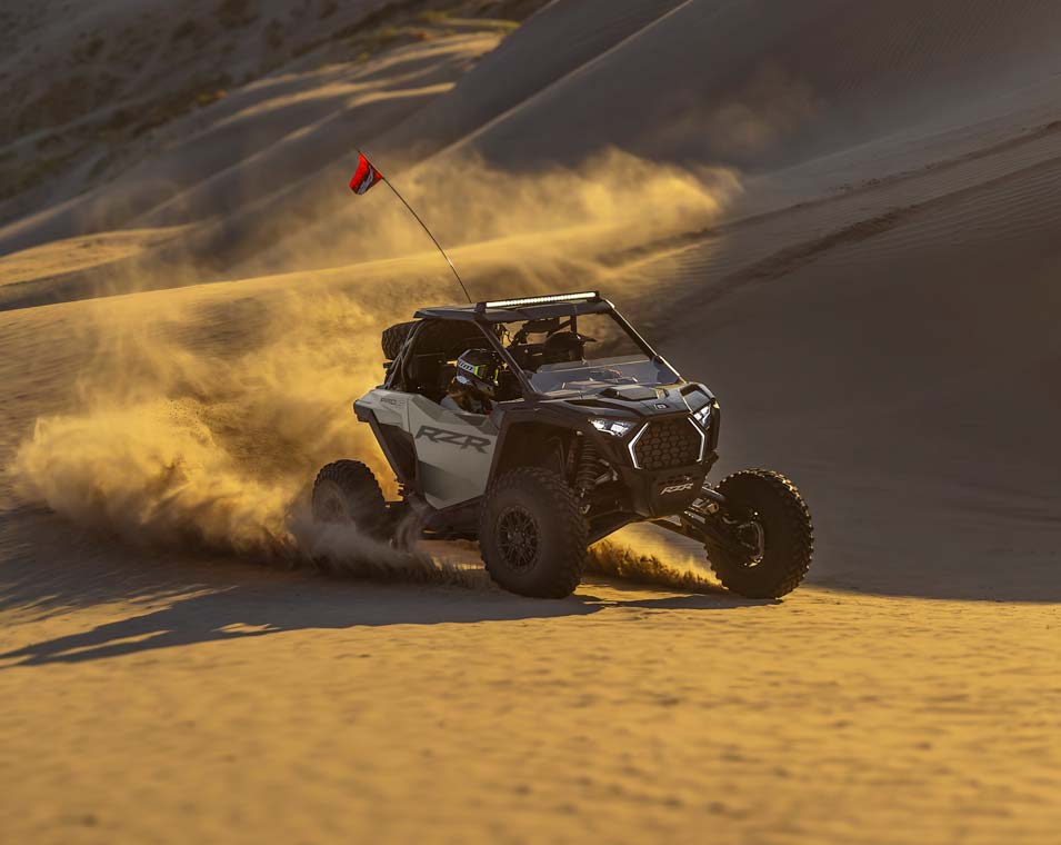 Unübertroffene Leistung, unschlagbarer Wert. Erobere Dünen, Wüsten, Felsen, Berge und mehr mit dem wendigen RZR Pro S.